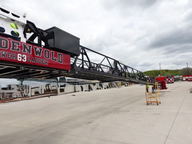 In this report, the apparatus completed final assembly and was being prepped to receive the aerial device while the aerial device continued initial assembly.